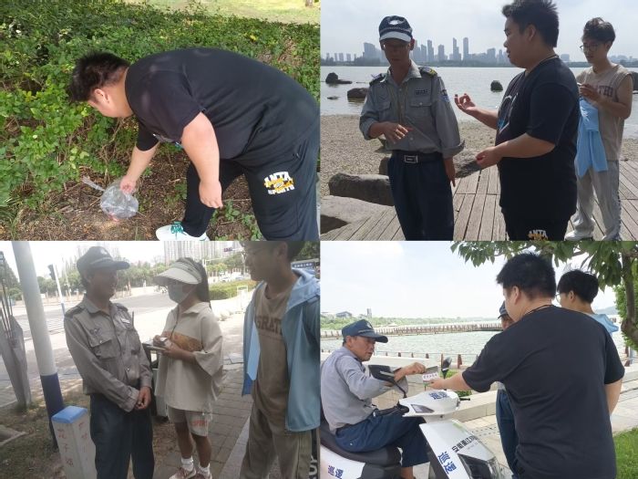 8月9日,炎炎夏日,烈日当头,仁药志愿服务队蚌埠分队在蚌埠市龙子湖公园开展“志愿服务呈暖意,夏日炎热送凉意”主题活动。队员们细心地询问公园安保人员工作与身体状况,耐心地向他们普及防中暑相关知识。活动过程中,志愿者们还不忘捡起身边的垃圾,还公园一片优美的环境。