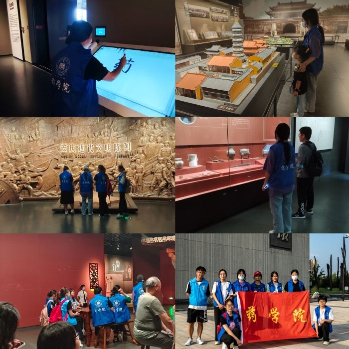 8月12日,仁药志愿服务队安庆实践队来到安庆市博物馆。安庆市博物馆有着深厚的历史底蕴和文化价值,共有6个固定陈列,2个临时展厅,一层为书画厅和临时展厅,二层有钱币陈列、安庆古代文明陈列、安庆近代文明陈列,三层有安庆城市记忆、黄梅戏艺术陈列。队员们在参观过程中深深感受到安庆作为历史名城的独特魅力,也见识了黄梅戏的艺术之美。大家共同追忆安庆的悠久历史,弘扬中国戏曲文化,在实际调研中增长见识。