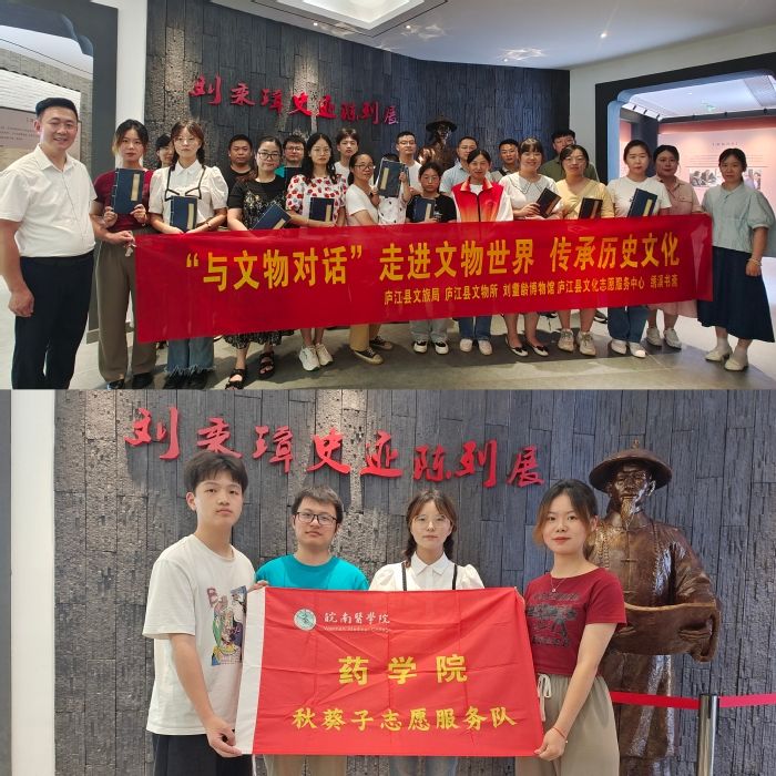 走进文物世界,传承历史文化。文物是历史发展的见证者,它承载着一个时代的文化。为了解文物世界,传承历史文化,7月20日,实践团队积极参与庐江县文化志愿服务中心举办的“走进文物世界”活动。队员们在讲解员的介绍下,详细了解了刘耋龄博物馆的建设情况、刘秉璋的成长故事、博物馆藏品介绍等,体悟每一件文物背后的历史和故事,感受每一个故事背后的底蕴,感悟中华文化与古人的智慧,身临其境感受优秀传统文化的魅力。