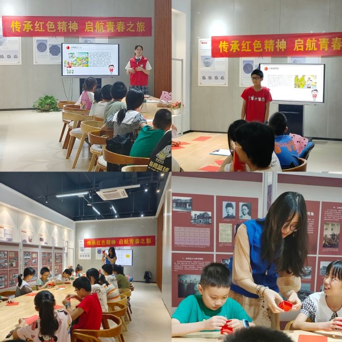 传承红色精神,启航青春之旅。红色精神是中国共产党领导中国人民在革命、建设、改革各个时期所形成的伟大革命精神,是中华民族伟大的精神财富。为了传承红色精神,弘扬红色文化,8月16日,实践团队联合庐江县图书馆开展一场“传承红色精神,启航青春之旅”的红色宣讲志愿服务活动。活动中志愿者带领小朋友阅读红色故事,引导小朋友汲取故事中蕴含的精神力量,点燃红色基因,传承红色精神,开启红色心灵。