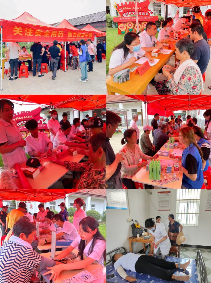 活动现场设立内科、外科、眼科、心电图检查、用药咨询、血压、血糖测量等窗口,医护工作者与志愿者们不畏酷暑,耐心服务当地居民,通过心电图、血压、血糖等诊断结果,有针对性地向村民宣讲如何通过改善饮食、运动习惯来提高身体素质,提倡低盐少油的饮食方式,提醒老年人要清淡饮食,平时加强锻炼,提前预防糖尿病、高血压等慢性疾病。活动现场,师生志愿者还开展了保健品与药品认知问卷调查,对居民提出的各种问题进行耐心解答,并为村民们发放了仁丹、十滴水、清凉油、花露水、驱蚊香囊等防暑驱蚊用品。