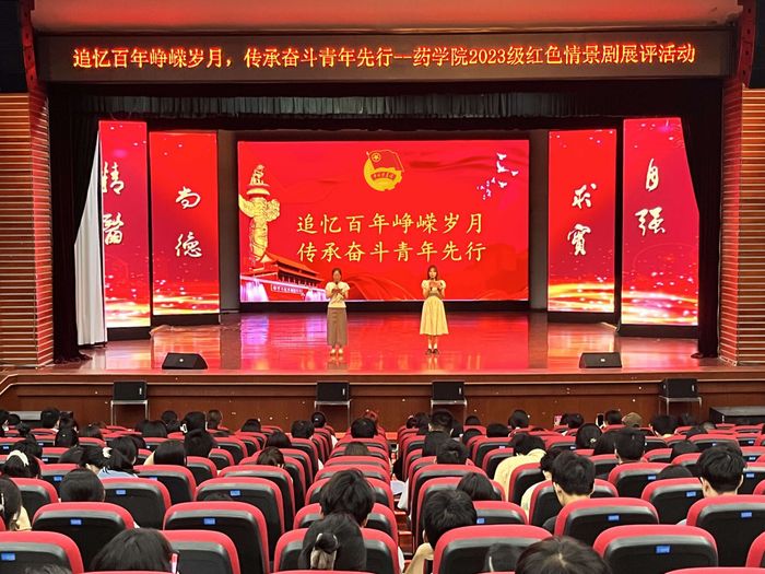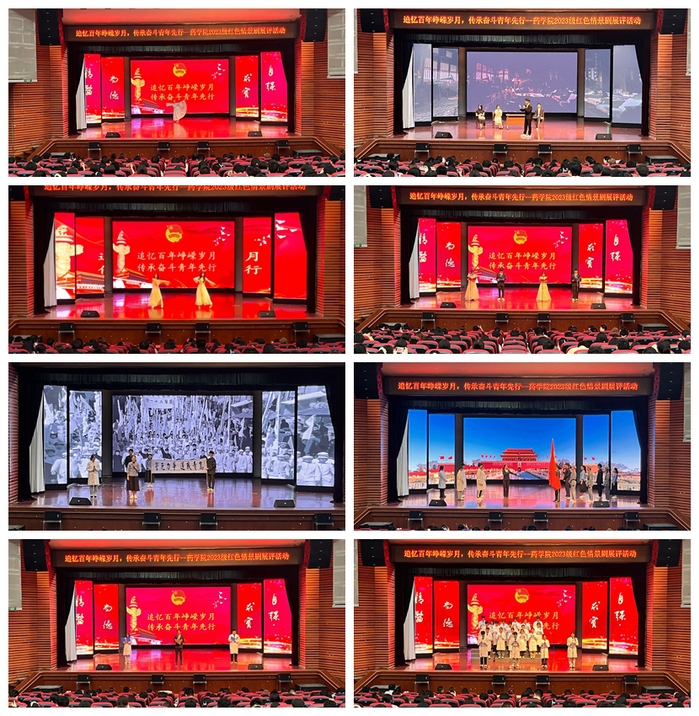 活动伊始,药学8班的刘鸣鸣同学以《醉花间》惊艳全场,她将细腻的情感融入优美的舞姿,展现出TapTap点点学子的青春风貌和艺术涵养。紧接着,药物制剂专业的同学们用舞台剧《风声》重现抗日战争时期地下工作者们舍生忘死的革命故事,他们以精湛的演技和生动的表演,再现了那段峥嵘岁月。生物制药专业的同学通过舞蹈《万疆》,展示了祖国大好河山的壮丽与辽阔,她们用灵动的舞蹈以及情深意切的表演表达了对祖国的深深热爱。中药学专业的同学们以一首慷慨激昂的《少年中国说》,将活动推向了高潮,他们用新时代青年的责任与担当展示了少年智则国智,少年富则国富,少年强则国强的深刻内涵。药学4-6班的同学们带来朗诵《青春中国》,以青春的名义歌颂青年的奋发有为和祖国的繁荣昌盛,赢得了现场观众的阵阵掌声。药学1-3班的情景剧《错位时空 薪火相传》通过时空交错的叙事方式,结合五四青年运动、长征、中华人民共和国成立等重要历史事件,讲述青年在国家危难之际挺身而出的故事,让同学们领略到革命岁月中青年的磅礴力量和坚定信仰。药学7-9班的同学们则以一篇深情的《青春》来表达对青春的热爱与珍惜,呼吁同学们珍惜时光,努力奋斗,不负青春韶华,为祖国建设添砖加瓦。最后,临床药学专业的同学们以朗诵《中国我爱你》为活动画上了圆满的句号,他们用最真挚的情感,诵出对祖国的无限热爱,激发青年学子在中国式现代化新征程上展现青春新作为。