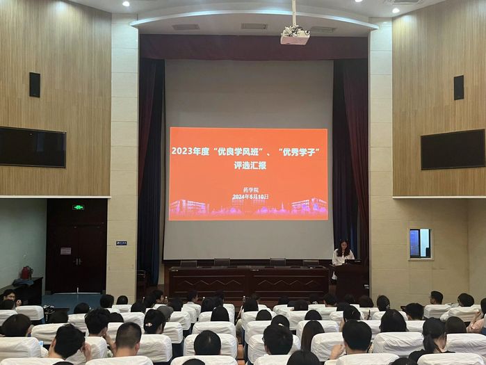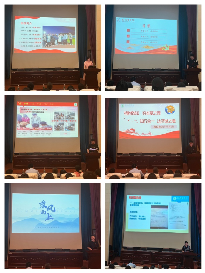 经个人申报、班级推荐、材料审查,9位候选人、6个班级脱颖而出,参加院级的激烈角逐。在“优秀学子”评选环节,选手依照顺序依次上台进行汇报,他们各自从“学习典型”“文体典型”“实践典型”“励志典型”“党员典型”五个类别讲述自己的经历和收获,全方位展现出药学学子朝气蓬勃、积极进取的形象。
