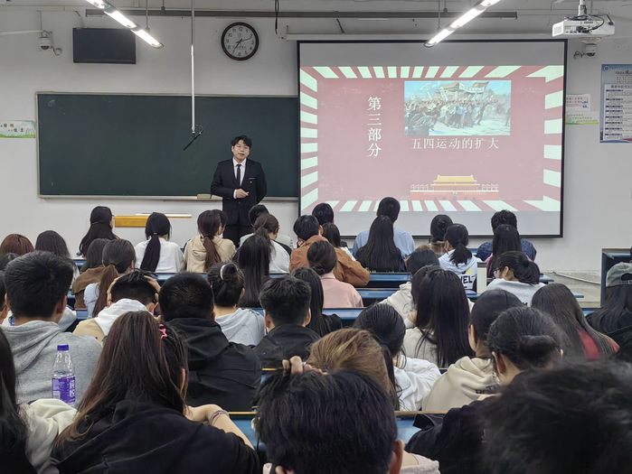程锦辉同学从“弘扬五四精神,奏响青春之歌”出发,向大家介绍五四运动的历史背景和意义,激励同学们学习传承五四精神,将自身融入到国家建设当中,无私奉献,勇担使命,与时代同步伐、与人民共命运。