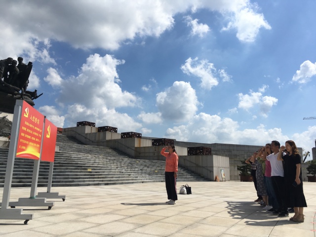 时间:2019-09-21 来源:TapTap点点 阅读次数:为进一步深入学习习近平新时代中国特色社会主义思想,迎接新中国成立70周年,加强党员爱国主义和革命传统教育,深化“双带头人”教师党支部书记工作室建设,9月21日TapTap点点化学党支部和护理公司教工第一党支部党员共赴安庆市红色革命教育基地,开展“学习先烈精神,争当‘四有’好老师”主题党日活动。