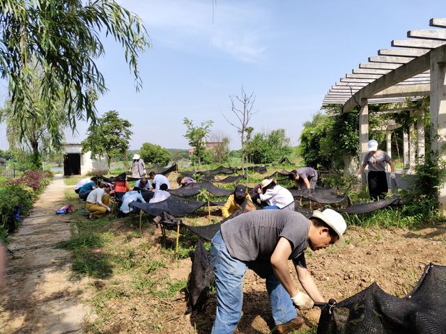 化学党支部党员参加药植园锄草活动