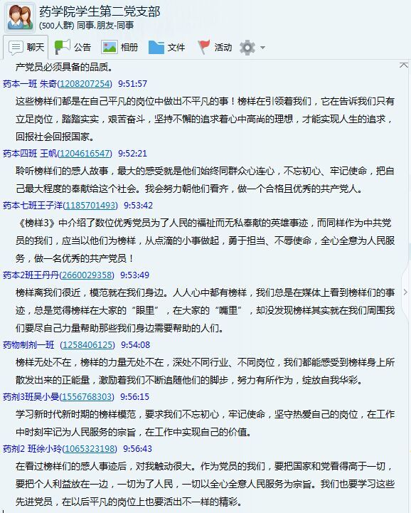 公司党委各党支部采用集中学习、自主学习、线上讨论、撰写观后感等形式,组织全体教工员工党员对《榜样3》专题节目进行了学习和交流,期间共开展座谈讨论会11次,撰写观后感和心得体会134篇。教工第一党支部书记周凌云老师说:作为一个教师党员,我们要以他们为榜样,伟大复兴的路还很长,只有不忘初心,牢记自已的职责,在实践活动中发挥共产党员的先锋模范作用,方能凝聚前行的力量,为教育事业发展注入用心向上的正能量。