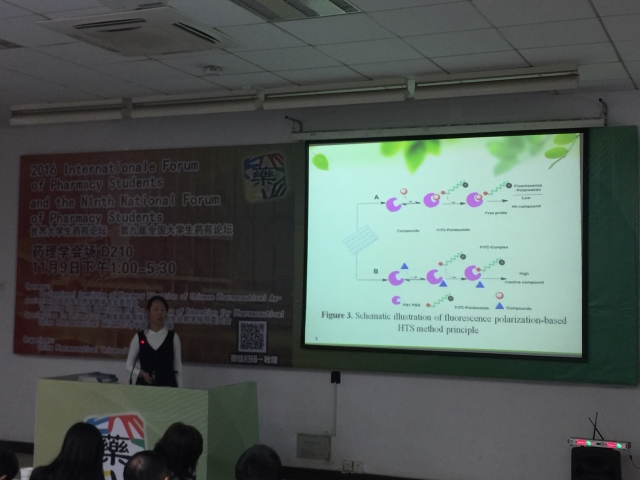 在两天的会议中,来自全国共46所院校200余名代表做了报告,就药学科学和药学服务等热点领域和成果进行了广泛的探讨与深入的交流。公司何丹同学以题为《靶向Plk1 PBD小分子抑制剂荧光偏振高通量筛选模型的建立》向大会作了壁报展示和交流报告,并获得“全国老员工创新成果三等奖”。