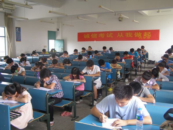 在考试之前,申请无人监考的三个班级分别召开主题班会,积极宣传诚信考试的意义,并举行了“诚信考试 从我做起”签名活动。6月25日下午,药学系2011级的100多名新生进行了首场“诚信考试 从我做起”无人监考考试。在无人监考考场中,员工们自觉地答卷、交卷,秩序井然。整场考试结束后,未发现任何考场违纪现象,实现了考试“零作弊”。