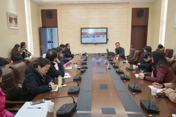 李后开结合自身多年科研经历,阐述了肠道菌与宿主之间的共代谢对药物药效及毒性的影响,他表示肠道菌群在疾病的发生发展中扮演了重要的角色,是影响药物药效/毒性、药物体内代谢的重要因素,靶向肠道菌调节是疾病防治的重要研究策略;周文从糖疾病药物、硫酸肝素探针分子合成与评价、喜树碱糖类药物等三个方面阐述了寡糖类药物及分子探针的发现;陈靠山从黑根霉多糖的分离纯化结构解析、黑根霉多糖的免疫活性及其对肿瘤细胞及移植瘤的抑制作用、黑根霉多糖对诱导结肠癌的抑制作用及其作用机制等三个方面阐述了黑根霉多糖抗结肠癌的活性研究。随后李后开、周文、陈靠山等就师生们的提问做了详细的解答。整场学术报告观念新颖、交流深入、探讨充分,受到了与会师生们的热烈反响。