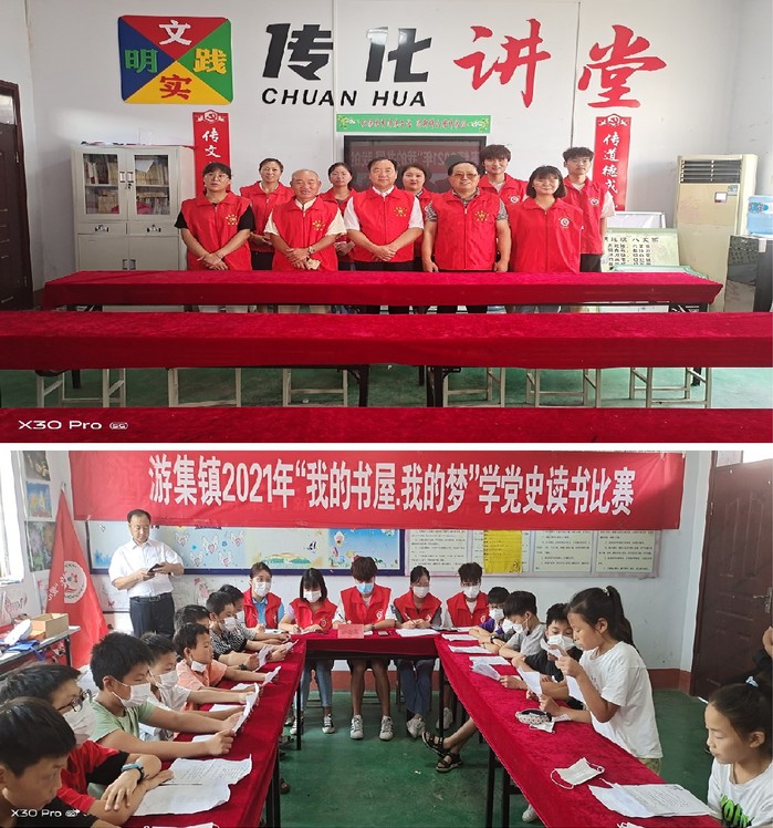 关爱孩童成长,助力祖国未来。为了积极响应国家对留守儿童的关注,表达老员工渴望回馈社会的心情以及对祖国下一代健康成长的期望。同学们前往了宿州市灵璧县游集镇,参加镇里的爱心学堂,开展建党史读书比赛、文艺活动等,帮助孩子们心中种下一个爱党爱国的种子。志愿服务队还参加镇里文化服务站的防疫工作,为村里镇里的人发放口罩,宣传防疫知识。