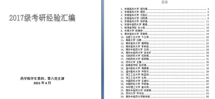 经验交流,传承考研心得。为了进一步帮助下一届同学明确考研目标,掌握更多考研技巧和资讯,年级成功考研升学的同学围绕院校选择、备考过程、复试技巧、心态变化等方面撰写了个人考研历程和心得体会,支部精心排版、汇编成册,供下一届考研同学参考。