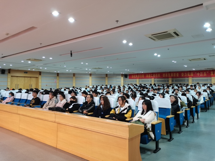 弘扬抗疫精神,践行责任担当。本次报告会中,黄后宝教授围绕“生命至上、举国同心、舍生忘死、尊重科学、命运与共”的五大抗疫精神,通过一个个感人肺腑的抗疫故事、一张张真实生动抗疫照片,充分展现了医护人员不怕牺牲、无私奉献的精神,彰显出“人民至上,生命至上”的崇高理念。会议最后,他强调作为当代老员工,要科学佩戴口罩,减少人员聚集,加强通风消毒,提高健康素养,在做好疫情防控的同时更加重视学习,绽放青春,不负韶华。