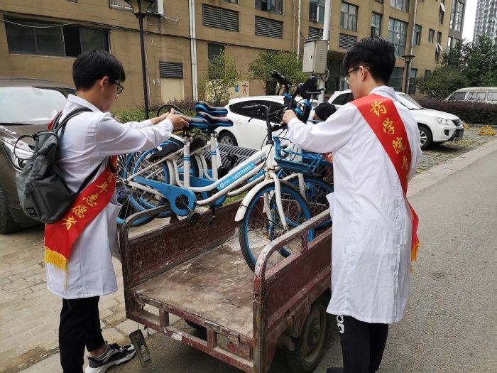 铲除“壁虎”清家园,规整车辆庆华诞。当日下午两点,志愿者们在儒林西苑社区开展清理墙面和整理共享单车活动。活动中,志愿者们分组行动,一组清扫墙面及公告栏上的小广告,另一组规整乱停乱放的共享单车。志愿者们不怕脏、不怕累,干劲十足,积极完成清理任务,赢得社区居民的认可与称赞。