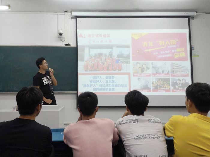 风土人情各有异,家乡变化齐喝彩。比赛于22日晚7:00正式开始。同学们利用暑期进行走访,通过拍照、采访的方式进行信息整理汇总,制作PPT后进行汇报展示。选手们经过精心准备,利用独具家乡特色的幻灯片向同学们展示介绍自己家乡,内容涵盖家乡的地理位置、风俗民情、历史文化、旅游景点、经济发展等方面。内容翔实的幻灯片,声情并茂的解说,婉转动人的背景音乐给观众带来了视觉和听觉上的享受。现场活动气氛热烈,观众席不时爆发出阵阵掌声。