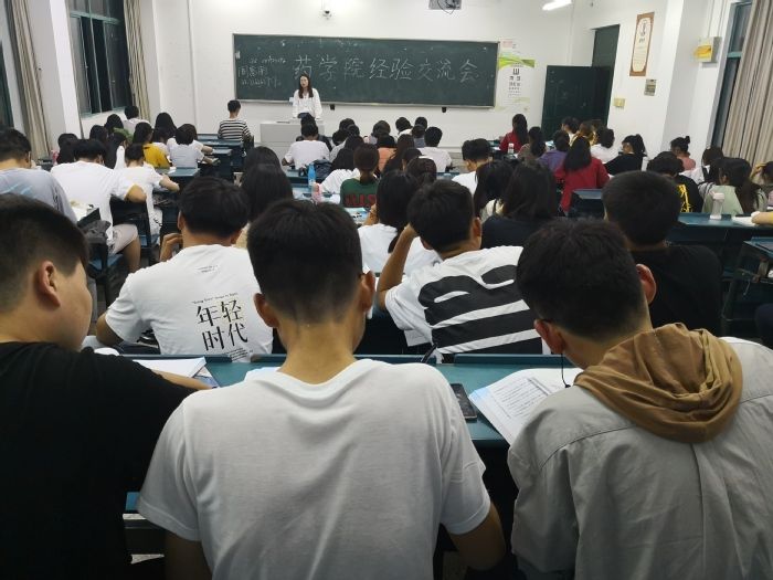经验交流会在优秀毕业生们的自我介绍中拉开序幕,他们结合自身经历,用轻松、诙谐的语言生动形象地讲述了他们在大学期间学习、生活、求职和考研等宝贵经验。为2018级员工指明了学习、工作的方向和目标,并对“考研还是工作好”、“如何学习高数”、“大学必须做的几件事”等共性问题作了精彩、明确的解答,鼓励同学们敢想敢做。在思想方面,他们有“当别人不重视你的时候,你一定要重视自己;当别人重视你的时候,你一定要把自己看轻”的经典论述。另外,优秀毕业生们还就如何规划时间、如何处理人际关系、如何有效的学习、如何积极的应对考试等问题进行了全面而细致的分享。学长学姐们的肺腑之言感染着在场的每一位同学,台下掌声不断,反响热烈。
