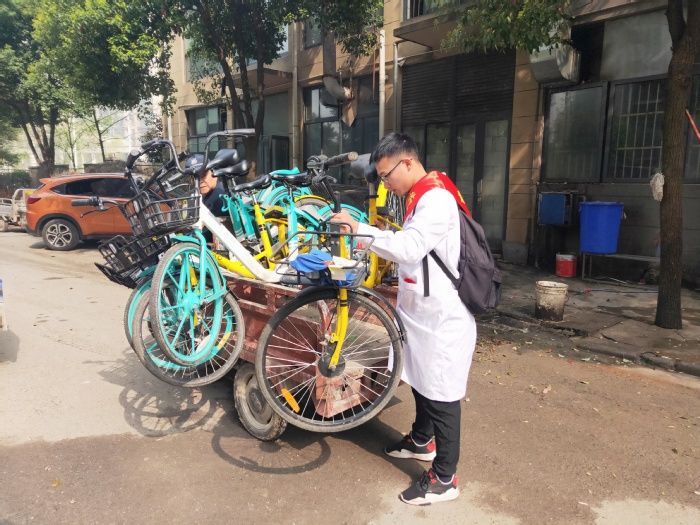 清洁脏垢散春光,归整单车暖心肠。志愿者们在儒林西苑开展了公益清洁和归整共享单车活动。志愿者们分工合作、互帮互助,对社区周围道路进行全面清扫与整理。朝气蓬勃的TapTap点点学子,发扬不怕脏不怕累的精神,将周边街道打扫得干净整洁,将共享单车整理的整整齐齐。志愿者们用实际行动为创建美好社区环境奉献了一份力量。