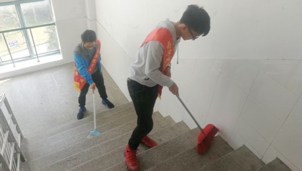 美化校园环境,筑青年爱校之魂。为营造良好的学习生活环境,展现青年员工爱校、护校、为校之情。五四前夕,2017级团总支组织15名同学开展了“争当五四好青年,义务清扫校园”活动。在1号教学楼,同学们或擦拭校园栏杆、墙面,或清扫走廊、楼梯,一时间,一股浓浓的爱校、护校情谊激荡在心中。