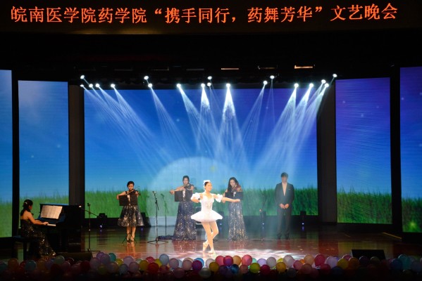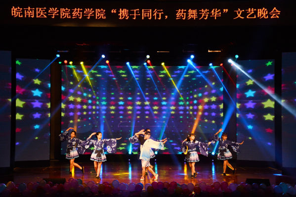 晚会开始前,精心制作的《热血药学》暖场视频顿时令现场气氛升温。气势磅礴的开场舞《春满芳华》在璀璨的灯光,绚丽的舞台上完美绽放,瞬间点燃现场;歌曲联唱《穿越时空的合唱》将京剧与现代歌曲完美联动,带领观众穿梭古今,共鸣人生相遇;婀娜多姿的古典舞《无归•千古》以舞者曼妙悠美的舞姿,将古风古韵的中华文明完美展现;热情似火的拉丁舞《如火年华》,动感奔放的爵士舞《My style》、《炫舞青春》以抢眼的舞姿,紧凑的舞步,热情奔放的舞态展现了药学学子的青春与热情;而器乐朗诵伴舞《卡农·天鹅湖》则将悠扬的乐曲、激昂的朗诵、优雅的舞步完美融合,带领观众步入了艺术的殿堂;相声《考研和工作》以幽默诙谐的语言演绎了踌躇抉择的青春岁月和药学人青春激扬,直面未来的精神风貌;歌曲联唱《闺蜜》、《成长》,创意节目手影舞《遇见》,则以不同形式讲述了同学们相遇皖医,共同成长,温情互助的同窗岁月。晚会在TapTap点点老师们的合唱《我们的青春》中顺利落下帷幕。穿插在晚会中的抽奖互动环节,一次次将现场气氛推向高潮。