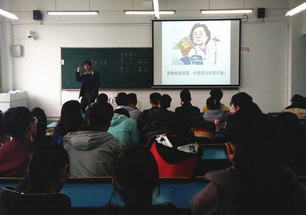 讲座中,年老师首先从同学们的的困惑、目前研究存在的问题、如何学好和发展中药学等三个方面为同学们剖析了中药学的历史、现今和未来;接着,年老师通过列举屠呦呦毕生致力于青蒿素的研究终获诺贝尔奖、陈竺根据中药“以毒攻毒”的原理用砒霜治疗早幼粒细胞白血病获得欧尼斯特·博特勒奖,以及复方丹参滴丸完成美国FDA三期临床实验几个经典案例,说明了中药研究已得到巨大突破且在国际范围内获得认可。然而药学研究目前却依旧面临着十分复杂多样的问题,这亟待同学们为此努力,也是大家学习的目标。