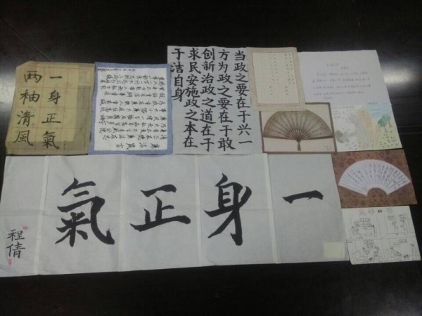 关于廉洁文化书画比赛的活动消息一经传出,同学们便积极响应,纷纷上交书画作品,竞显书画功底。作品有书法类和绘画类,书法有硬笔、毛笔等,绘画类有水粉、素描、简笔画等,种类齐全。2015级团总支员工会对书画作品进行了认真的评审。王丽丽同学的漫画构思精巧,色彩斑斓,从众多绘画作品中脱颖而出。程倩同学的《一身正气》气韵流畅、挥洒自如,吸引了同学们的眼球,让人感受到了书法的气势与风姿。书法和绘画作品们形式多样、别出新意、主题鲜明,展现出药学学子多才多艺的精神面貌。最后,书法和绘画共评出一等奖、二等奖、三等奖若干。