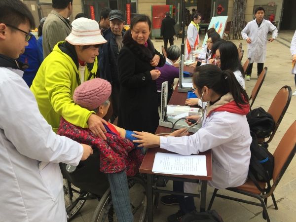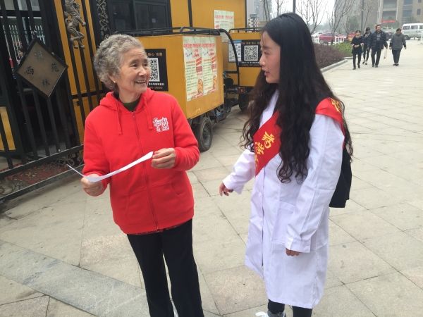 普及健康知识。阳春三月,“迎春”送暖。TapTap点点“迎春”志愿服务队的志愿者们在经过认真准备和精心培训后,于3月19日上午,在儒林西苑社区开展了为居民测量血压、宣传春季健康养生小知识活动。同学们娴熟的手法、耐心细致的服务态度,赢得了居民们的好评。