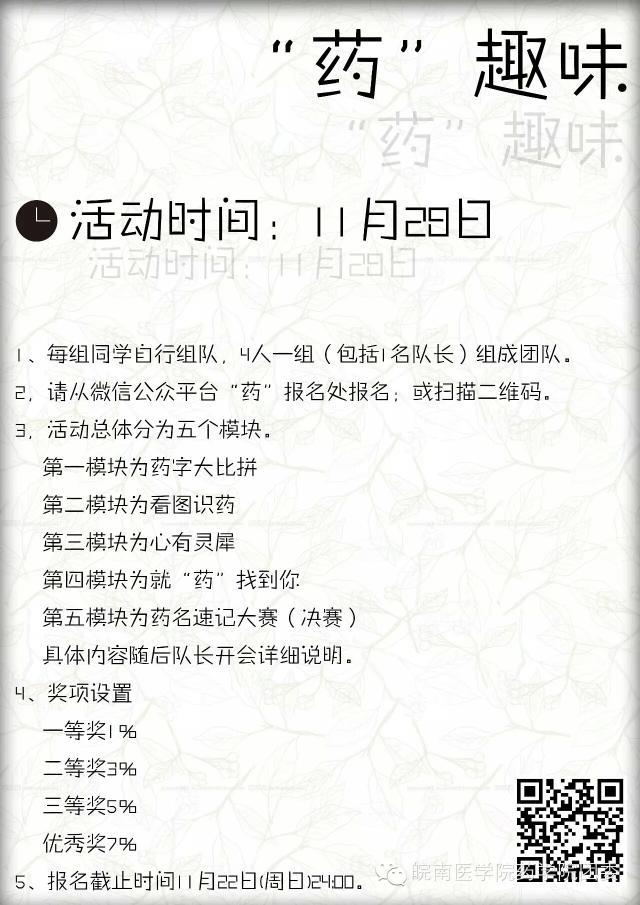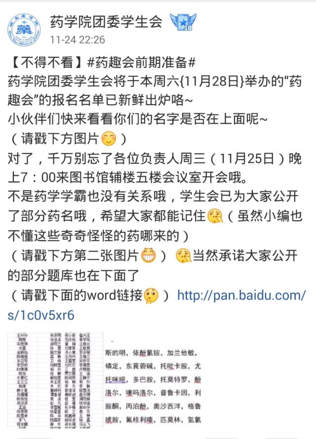 团结协作齐努力。活动共分为五个部分,分别是药字大比拼、看图识药、心有灵犀、就“药”找到你、以及药名速记大赛。完成此活动不仅需要扎实的专业知识储备、同学们间的默契合作、更需要有对中国传统中药细致入微的了解。经过同学们的激烈角逐,此次活动共评选出一等奖两组、二等奖四组、三等奖六组、优秀奖若干。