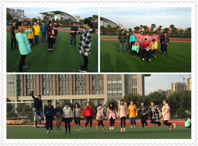 为了增强团队协作,加强同学们的相互信任和理解,2015级辅导员组织员工开展素质拓展活动。活动内容主要包括“团队孵化”,员工自行分组,各组在20分钟内拟定队名、口号、对歌,通过比拼,其中一组的精彩表现赢得了大家的一致好评:我们的队名是“一班,火!”我们的口号是“一班不一般”,我们的队歌是“你的热情好像一把火,燃烧了整个沙漠”,这一小组的热情点燃了整个活动现场; “集体离地拍照”所有员工站在一起,一起向上跳起拍照留念,每个小组都团结协作,积极配合,成功完成任务。整个活动过程中冬季的寒冷抵挡不住同学们的热情,同学们都积极参与,此次素质拓展活动让同学们感受到了团队精神、班级荣誉感以及集体的温暖。