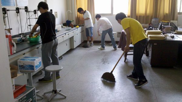 在打扫实验室时,同学们怀着对老师们多年教育的感谢和对实验室的留恋,认真仔细地打扫着实验室的每个角落,仔细的擦拭着陪伴了自己四年的实验仪器,同学们的一举一动都流露出对实验室的不舍,而后部分同学又到教师办公室进行了打扫,毕业生们以自己的行动向老师表达了对辛勤培养的感谢,同时老师也对同学们的前程寄予了殷切的希望和祝福。