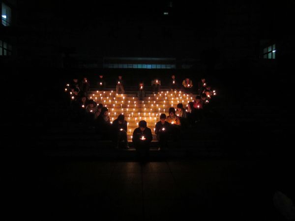 11月20日上午,活动在食堂前正式拉开序幕。同学们在布置好宣传点后,就向过往的师生认真讲解小悦悦事件,以及由此所产生的反思;同时组织大家积极在“拒绝冷漠、传递温暖”的宣传横幅上进行签名留言。21日晚上,大家在图书馆前举行了悼念小悦悦的默哀活动。同学们手捧白色蜡烛,围成爱心状由中心开始传递烛火。随着活动的进行,更多的同学自愿加入进来,将自己手中的蜡烛放进爱心中,活动达到高潮。最后在温暖的烛光下,大家集体默哀1分钟。