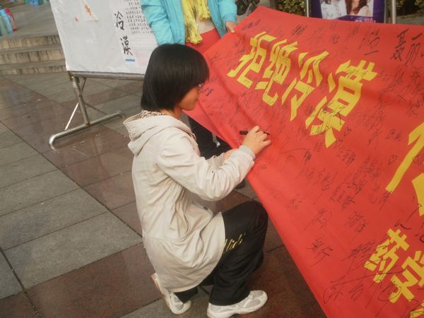 2011年11月21日,是小悦悦去世整整一个月的日子,药学系2011级团总支组织开展了“拒绝冷漠,传递温暖”活动,以此来向全校师生发出倡议,用真爱赶走冷漠。