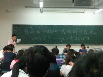 时间:2010-05-12 来源:人员机构 阅读次数:5月11日晚,药学系08级团总支在西教学楼102教室组织开展了主题为“传承五四精神,共促科学发展”的辩论赛药学9班至12班参加比赛。08级团总支书记颜亮、辅导员王爱侠参加了本次活动。