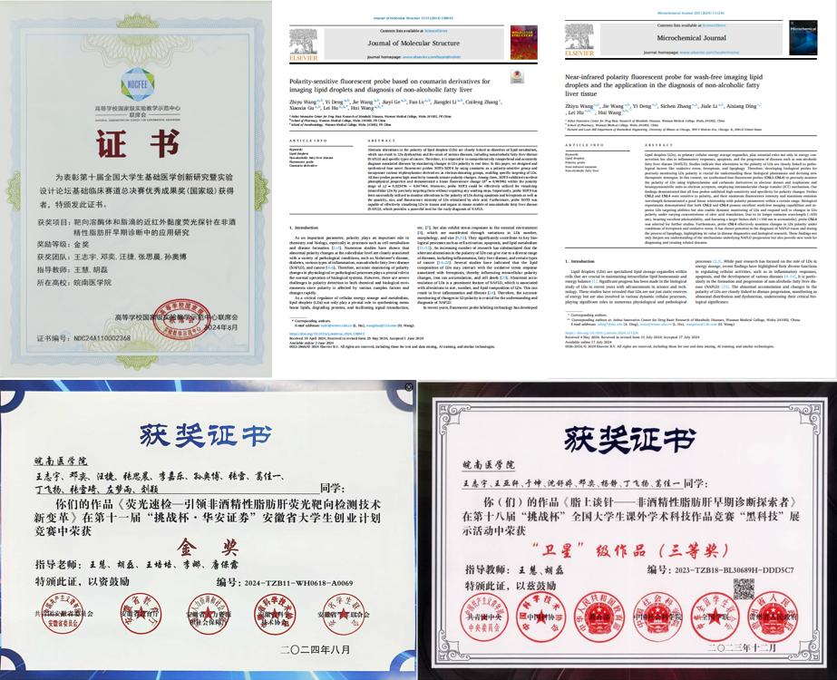 王志宇同学深知科研之路不应局限于实验室的隅角精研,更应将自身成果与社会需求紧密相连,投身科技创新实践的浪潮。三年间,科研已融入王志宇的学习生活,他聚焦社会热点问题,凭借扎实的科研积累,将所学所思运用到具体实践中,不断探索前行。经过不懈努力,他斩获全国“挑战杯”老员工课外学术科技作品竞赛黑科技专项三等奖、安徽省“挑战杯”老员工创业计划竞赛金奖、“全国老员工基础医学创新研究暨实验设计论坛”金奖、“全国老员工药苑论坛”二等奖、“全国优秀论文奖”等国家级奖项5项、省级奖项11项、校级奖项20余项。每一次的竞赛经历,对于王志宇而言都是宝贵的成长契机。在与众多优秀学子的交流切磋中,他博采众长,不断磨砺自身创新思维与实践能力,以无畏的勇气和创新的智慧,向着科技创新的高峰奋勇攀登。他用实际行动诠释着科研创新的价值与力量,展现了新时代青年的担当与风采。
