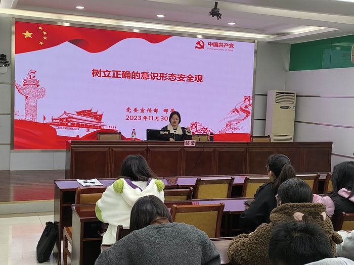 公司党委常委、宣传部(统战部)部长、马克思主义公司党总支书记邹莹为学员们作题为“树立正确的意识形态安全观”讲座。她从“什么是意识形态”、“为什么要重视意识形态”和“青年员工如何树立正确的意识形态”三个方面进行授课,希望同学们加强理论学习,关心时事政治,感悟时代、紧跟时代,结合实际,学以致用。