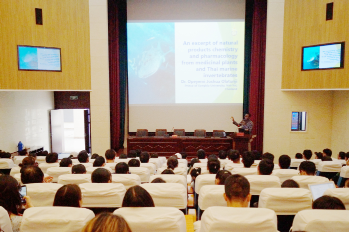 Opeyemi Joshua OLATUNJI博士结合自身多年科研经历,阐述了从植物分类学和化学成分分布特征线索判断,法属波利尼西亚岛中特有植物Oparanthus teikiteetini具有潜在抗二型糖尿病活性成分,并通过系统分离法从该植物中分得多种活性成分,经NMR等方法鉴定,发现以香豆素衍生物为主,其中2个为新化合物。体外研究表明,上述物质具有潜在的抗糖尿病活性,主要涉及促进GLP-1分泌作用,并希望与公司教师开展科研合作。随后Opeyemi Joshua OLATUNJI博士就师生们的提问做了详细的解答。整场学术报告观念新颖、见解独到,受到了与会师生的热烈响应。最后Opeyemi Joshua OLATUNJI博士参加了安徽省多糖药物工程技术研究中心等科研场所。
