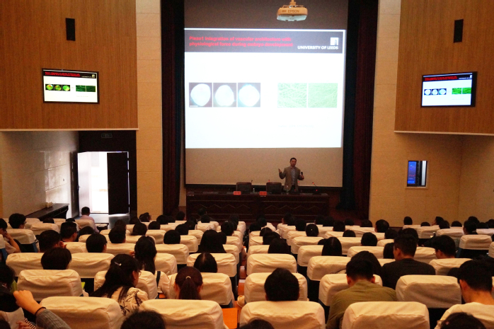 施健研究员结合自身多年科研经历,以目前心血管疾病在离子通道领域研究热点入手,从整体动物、分子水平、基因水平等,系统阐述了应用小电导高分辨率单通道记录技术在血管平滑肌细胞和血管内皮细胞中实时研究阳离子通透性TRP通道和Piezo1通道的药理调控功能与相应药物干涉机制,探索治疗心血管疾病的新型特异性药物。随后,施健简单介绍了利兹大学医学部,并期待公司青年骨干教师和优秀研究生赴英学习交流。最后,施健还就师生们的提问做了详细的解答。整场学术报告观念新颖、见解独到,受到了与会师生们的热烈响应。
