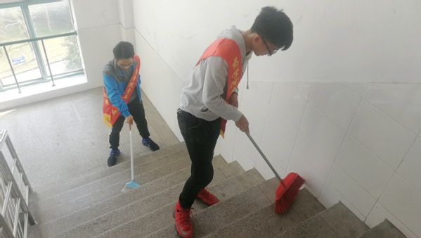 美化校园环境,筑青年爱校之魂。为营造良好的学习生活环境,展现青年员工爱校、护校、为校之情。五四前夕,2017级团总支组织15名同学开展了“争当五四好青年,义务清扫校园”活动。在1号教学楼,同学们或擦拭校园栏杆、墙面,或清扫走廊、楼梯,一时间,一股浓浓的爱校、护校情谊激荡在心中。