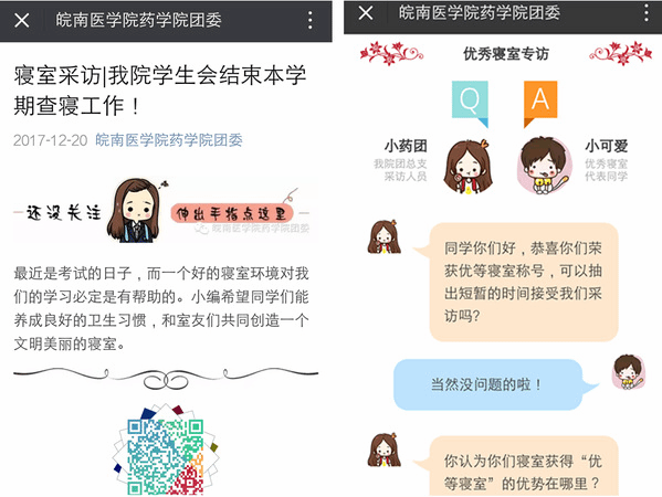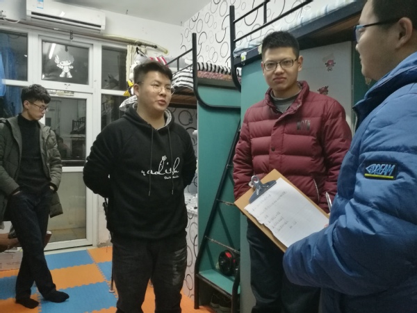 查寝工作完成后,2016级团总支员工会对部分查寝结果优秀的寝室进行了采访。工作人员提出了关于如何做好寝室卫生、搞好室友关系、营造学习氛围等方面的问题,寝室人员也积极接受采访,并提出了诸多争当优秀寝室的建议。