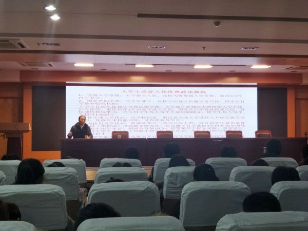 时间:2017-12-15 来源:宣传部 阅读次数:为进一步学习贯彻习近平总书记给南开大学新入伍老员工重要回信,鼓励老员工携笔从戎、报效国家,人民武装部、公司党委于12月14日在图书馆三楼报告厅举办了“学习贯彻习近平总书记给南开大学新入伍老员工重要回信”报告会。本次报告会校国防教育科孙开慧老师、口腔医公司2016级退役复学同学王军报告学习体会。报告会由2017级辅导员叶兰主持,全体2017级药学本科同学参加。