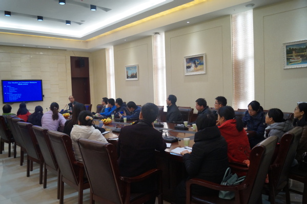本次沙龙的主题是“从精准医学及转化医学角度探讨药学研究”,并邀请中国医学科公司/北京协和医公司(天津)泰达国际心血管病医院副经理、基础与临床转化研究所所长何国伟教授作了题为“心血管疾病精准及转化医学中的多组学研究”的学术报告。何教授从基因组学、转录组学、蛋白质组学、代谢组学等阐述了其在心血管临床与基础研究方面的成果。报告结束后,座谈交流有序进行,何教授先分享了自己目前正在研究的课题,与会教师们结合自身研究方向和内容,就“临床前沿精准药学”、“转化医学中的药学发展”及何教授报告中的内容等提出了各自的疑惑和问题,何教授一一答疑解惑,大家讨论热烈,氛围轻松活跃。整个沙龙活动持续近3个小时,部分参会教师与何教授初步达成合作意向。最后,在韩军的陪同下,何国伟教授参观了安徽省多糖药物工程技术研究中心。