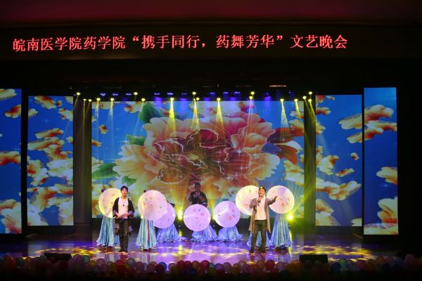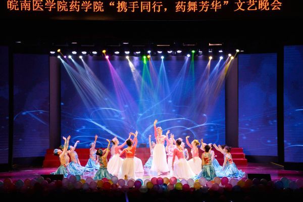 晚会开始前,精心制作的《热血药学》暖场视频顿时令现场气氛升温。气势磅礴的开场舞《春满芳华》在璀璨的灯光,绚丽的舞台上完美绽放,瞬间点燃现场;歌曲联唱《穿越时空的合唱》将京剧与现代歌曲完美联动,带领观众穿梭古今,共鸣人生相遇;婀娜多姿的古典舞《无归•千古》以舞者曼妙悠美的舞姿,将古风古韵的中华文明完美展现;热情似火的拉丁舞《如火年华》,动感奔放的爵士舞《My style》、《炫舞青春》以抢眼的舞姿,紧凑的舞步,热情奔放的舞态展现了药学学子的青春与热情;而器乐朗诵伴舞《卡农·天鹅湖》则将悠扬的乐曲、激昂的朗诵、优雅的舞步完美融合,带领观众步入了艺术的殿堂;相声《考研和工作》以幽默诙谐的语言演绎了踌躇抉择的青春岁月和药学人青春激扬,直面未来的精神风貌;歌曲联唱《闺蜜》、《成长》,创意节目手影舞《遇见》,则以不同形式讲述了同学们相遇皖医,共同成长,温情互助的同窗岁月。晚会在TapTap点点老师们的合唱《我们的青春》中顺利落下帷幕。穿插在晚会中的抽奖互动环节,一次次将现场气氛推向高潮。