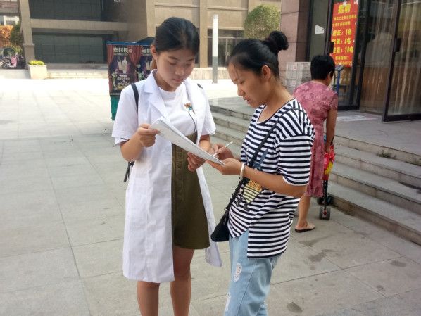 用药健康调查,切实感受民情。7月6日上午,六安、淮南小分队分别在六安市霍山县衡山镇和顺花苑小区和淮南市凤台县福海园小区两地同时进行“药”健康问卷调查活动。同学们以药为主题,通过问卷调查的形式了解人们对合理用药的认识情况,以此呼吁人们“要健康”。活动过程中,尽管烈日下同学们汗流浃背,但大家对活动的热情比太阳更热,每个成员都耐心地向居民讲解日常用药安全、注意事项及用药误区;建议大家定期去医院体检,留意身体上的小变化;还一一解答居民们提出的其他疑问。社区居民的配合与对用药健康知识的渴求让同学们受到了极大的鼓舞。通过此次活动,让更多的人了解了安全用药、健康用药的知识,帮助人们走出用药误区,学会巧用药,会吃药。