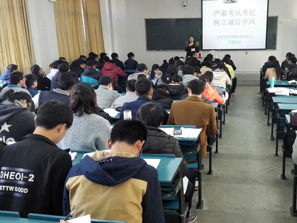 2015级通过召开班长、团支书、学习委员专题会议,对考试月期间的相关工作进行了提前规划和布置。辅导员金鑫老师对全体同学提出了要求和希望,使员工充分认识到,诚信不仅是一种品行,更是一种责任;不仅是一种道义,更是一种准则,希望每位同学都为自己交上一份合格的诚信答卷。