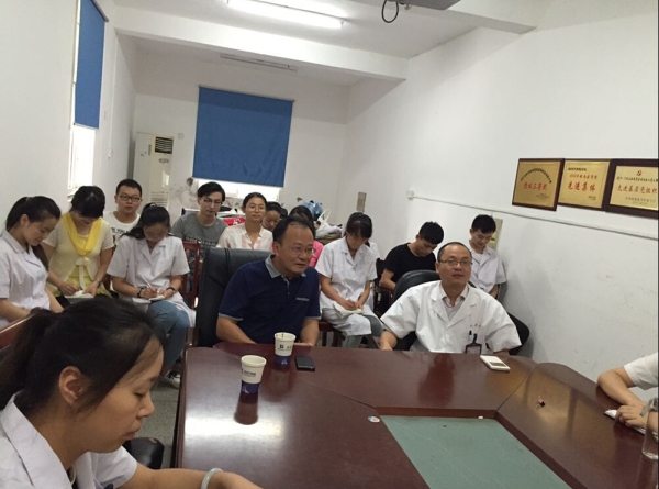 8月3日下午,公司党总支书记李康才和辅导员叶兰来到药剂科会议室,和“卓越药师班”同学们共同听了一场消化内科的病例讨论。讨论开始后,指导老师从两个实际病例出发,深入浅出的讲解,同学们认真思考,踊跃回答问题,现场气氛活跃。结束时,徐文科副主任对同学们见习期间的表现给予了肯定,李康才书记对药剂科老师几周的辛苦带教表示了感谢,和同学们聊及见习感受时鼓励大家将见习期间的所见所思及时总结,勉励同学们在临床药学的路上走的更远。