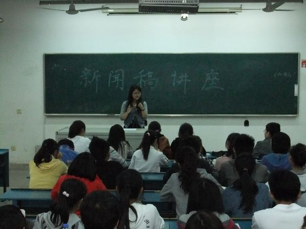 交流会中,三位同学围绕着新闻稿的基本格式、段落分配、写作技巧等方面,给大家作了全面、详细的阐述和指导。其中,唐苗条理清晰的讲述了新闻稿的基本要素,并对新闻稿的排版格式、语言表述等要求进行明确;张玲玲则结合校园网的新闻,详细介绍了新闻稿的导语、主体、结尾部分的写作要求,指出新闻稿要段落分明、详略得当;而李钰馨在前两位同学讲解的基础上,对新闻稿的摄影技巧进行了介绍。最后,药学系2011级辅导员侯东晓对此次经验交流会进行总结发言,在对三位同学表示肯定和感谢的同时,鼓励在座的各位同学,要端正态度,认真学习,努力提高自己的写作水平。