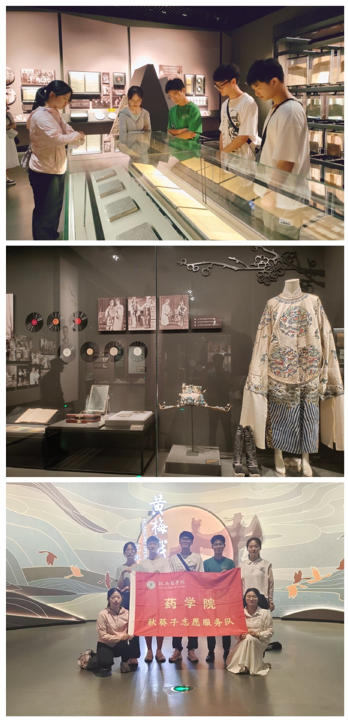 探寻非遗之美,聚焦文化传承。安庆是一座历史悠久、文化底蕴深厚的城市,安庆博物馆是一座集历史、文化、艺术于一体的博物馆,展示内容以历史文物、革命文物和戏剧文物为主,致力于保护和传承中国非物质文化遗产——黄梅戏。为探寻这座千年古城的魅力之源,助推黄梅戏文化传播,8月16日,秋葵子志愿服务队前往安庆博物馆进行调研学习。队员们了解安庆地区历史文化的发展脉络,感受古皖文明的前世今生,领略黄梅戏艺术的独特魅力。尤其在黄梅戏专题展览区,一件件美轮美奂的戏曲服饰和珍贵的文物藏品引人注目,影像中黄梅戏的声腔神韵使队员大为感触。