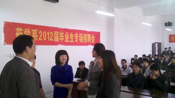 毕业生就业工作是药学系一直重视的一项工作,在系部领导的统一部署和安排下,2011年11月17日,药学系在老员工活动中心二楼就业报告厅,举办了江苏豪森医药销售有限公司专场招聘会。