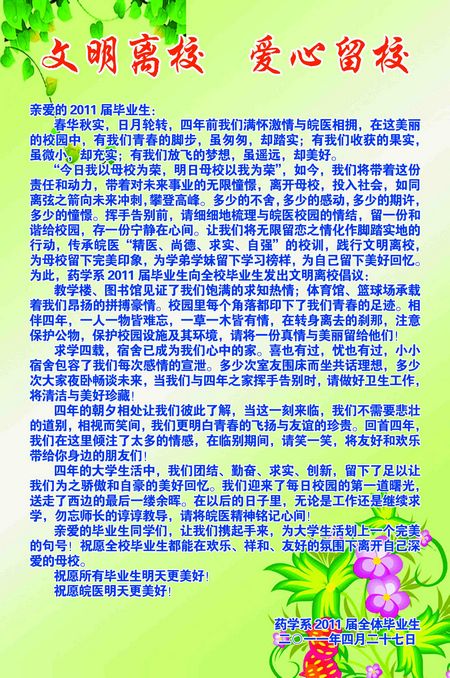 药学系2011届毕业生文明离校活动正式拉开帷幕