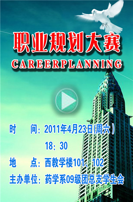 就业问题越来越受到社会的关注,为了让同学们尽早树立危机意识,引导同学们以科学的态度规划自己的职业生涯,化“被动就业”为“主动择业”,认识自我,有目标的发展自我,从而赢在职场的起跑线上,药学系09级特举行职业规划大赛,给同学们一个畅想未来的舞台。