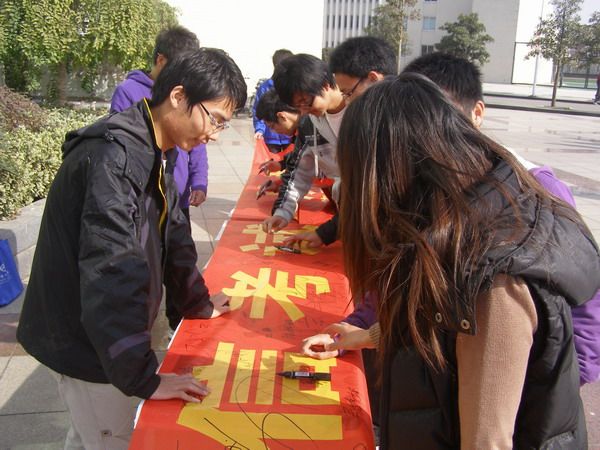 时光飞逝,大学新生的第一次考试悄然而至,平时做人做事不能没有诚信,考试同样要注重诚信。活动现场,“诚信考试,从我做起”的红色条幅分外醒目,吸引了许多师生驻足观看,大家纷纷拿起签字笔,怀着饱满的诚信誓言在横幅上郑重写下自己的名字。同学们纷纷表示,他们签下的不只是一个名字,而是一份责任,他们将把诚信落实到生活的点滴中去,真正做到“知诚信,讲诚信”。